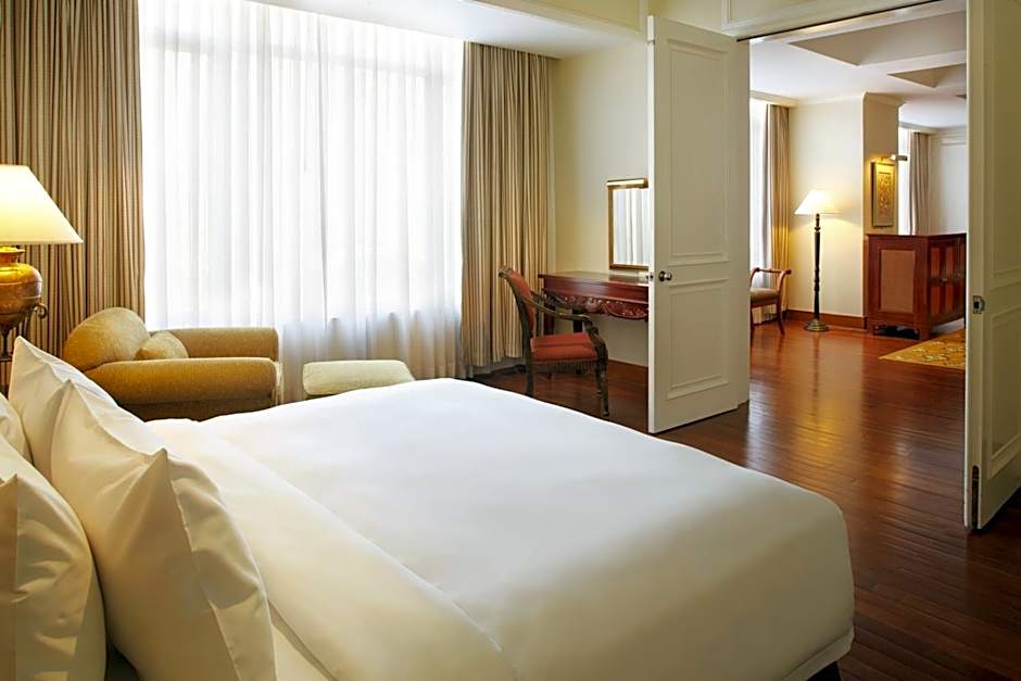 Guests enjoy a spacious sitting area, a marble bath and a generous work area with enhanced lighting.